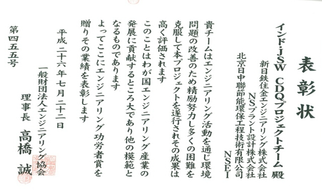 本次奖励也是该协会首次对日本以外的外国公司颁发的奖项,旨在通过实施海外CDQ项目表彰北京中日联公司在推进环境保护技术普及方面做出的卓越贡献。