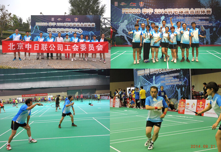 2014年9月20日、21日北京中日联公司羽毛球队参加了北京外企体育协会组织的“FESCO李宁2014年羽毛球联赛”,经过一天半的激烈比赛,最终获得小组第十名的佳绩。